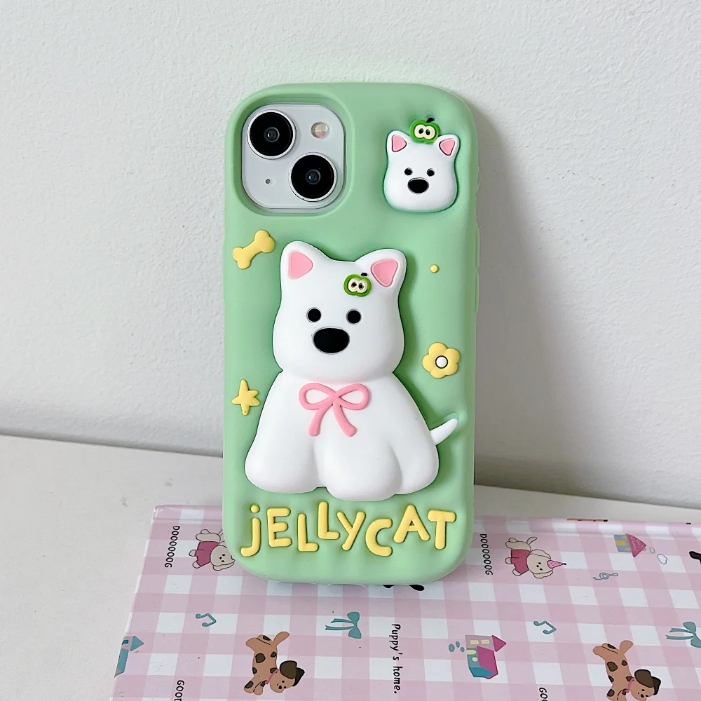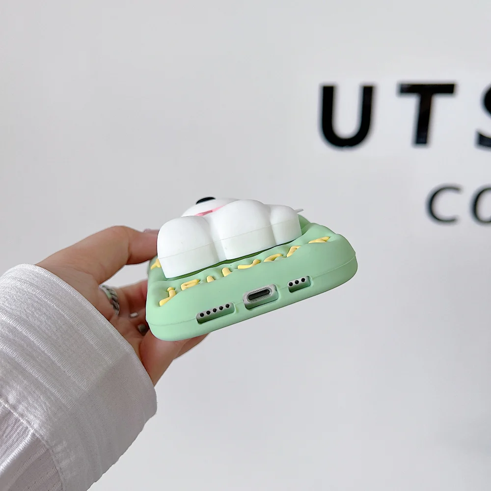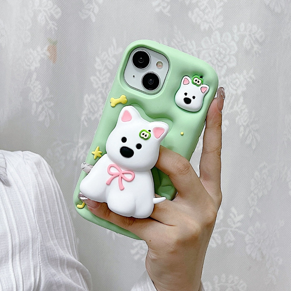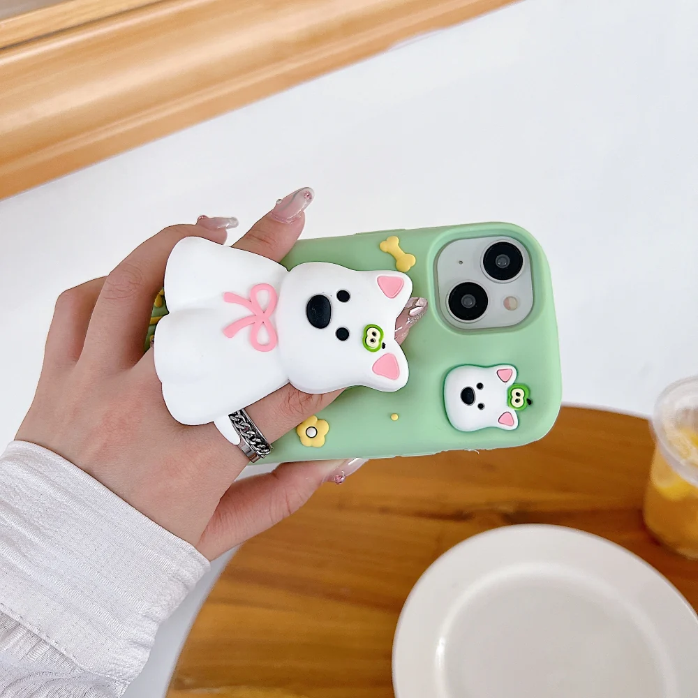 3D Puppy Knot Cartoon Pop Case, Premium Silicone Case Dog Love Light Green Color with Phone Holder Cool Full Protective ... -