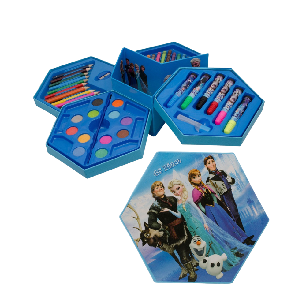 Complete 46-Piece Art Set – Packed with colored pencils, crayons, watercolors, sketch pens, oil pastels, and more – this all-in-one color box is perfect for young budding artists to explore their creativity.