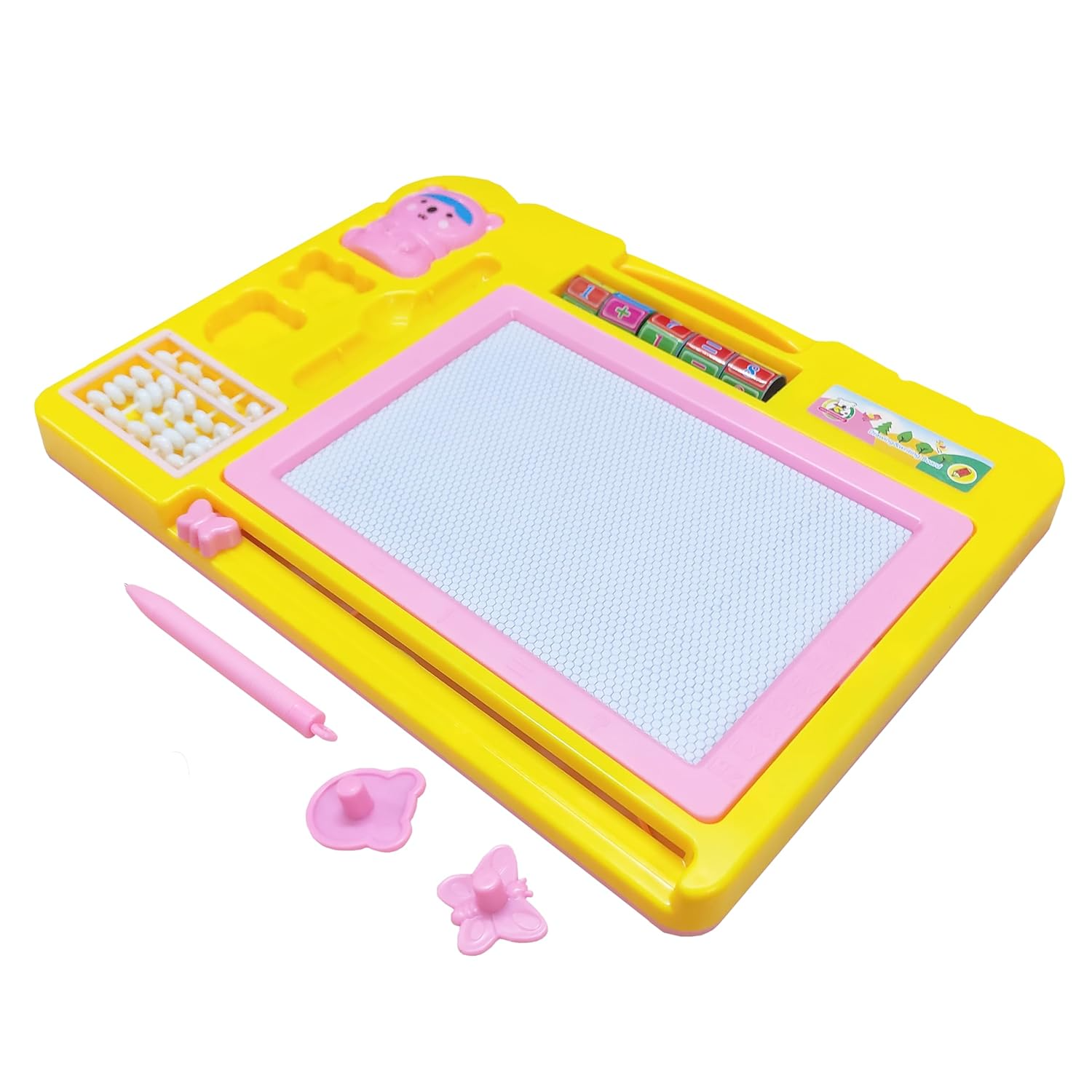 Drawing & Writing Board for Kids – Cartoon Themed Kid’s Slate Board with Doodle Pen and Stamps – Practice Slate for Kids, Erasable Drawing and Writing Board with Pen for Kids