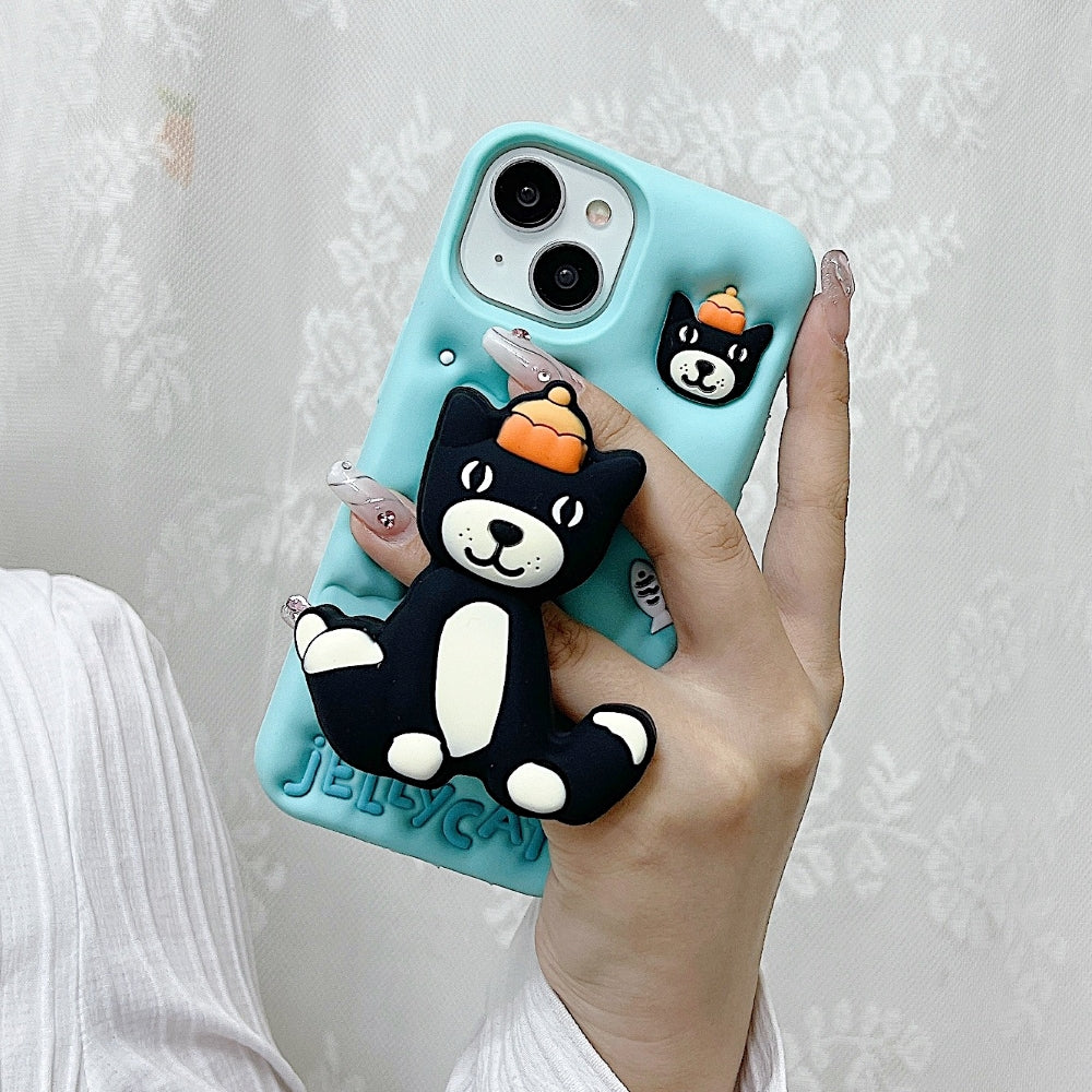 Jelly Cat Stand TPU (Soft) Silicone Phone Case | 3D Cute Black Cat Kickstand Mobile Cover for iPhone (R2BS978)
