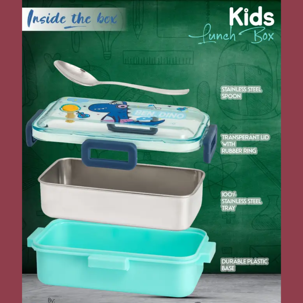 Experience convenience and quality with the Kids Lunch Box. Crafted from 100% food-grade stainless steel, this air-tight and leak-proof tiffin box keeps your food fresh and mess-free. Designed with three compartments, it lets you pack a healthy, portion-controlled meal. Ideal for office, school, or travel. Comes with a stylish spoon and chopsticks set for a complete dining experience. Durable, easy to clean, and built for modern lifestyles.