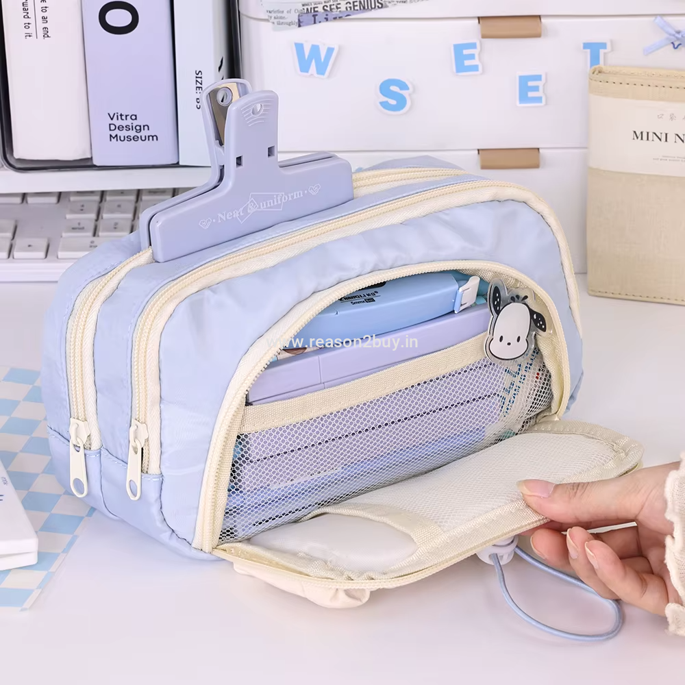 The aesthetic light blue design appeals to all ages, making it a versatile accessory that easily fits into backpacks, handbags, or travel luggage. Whether you're using it for art supplies, makeup, or daily school essentials, this spacious pouch is the perfect solution for staying neat and prepared wherever you go.