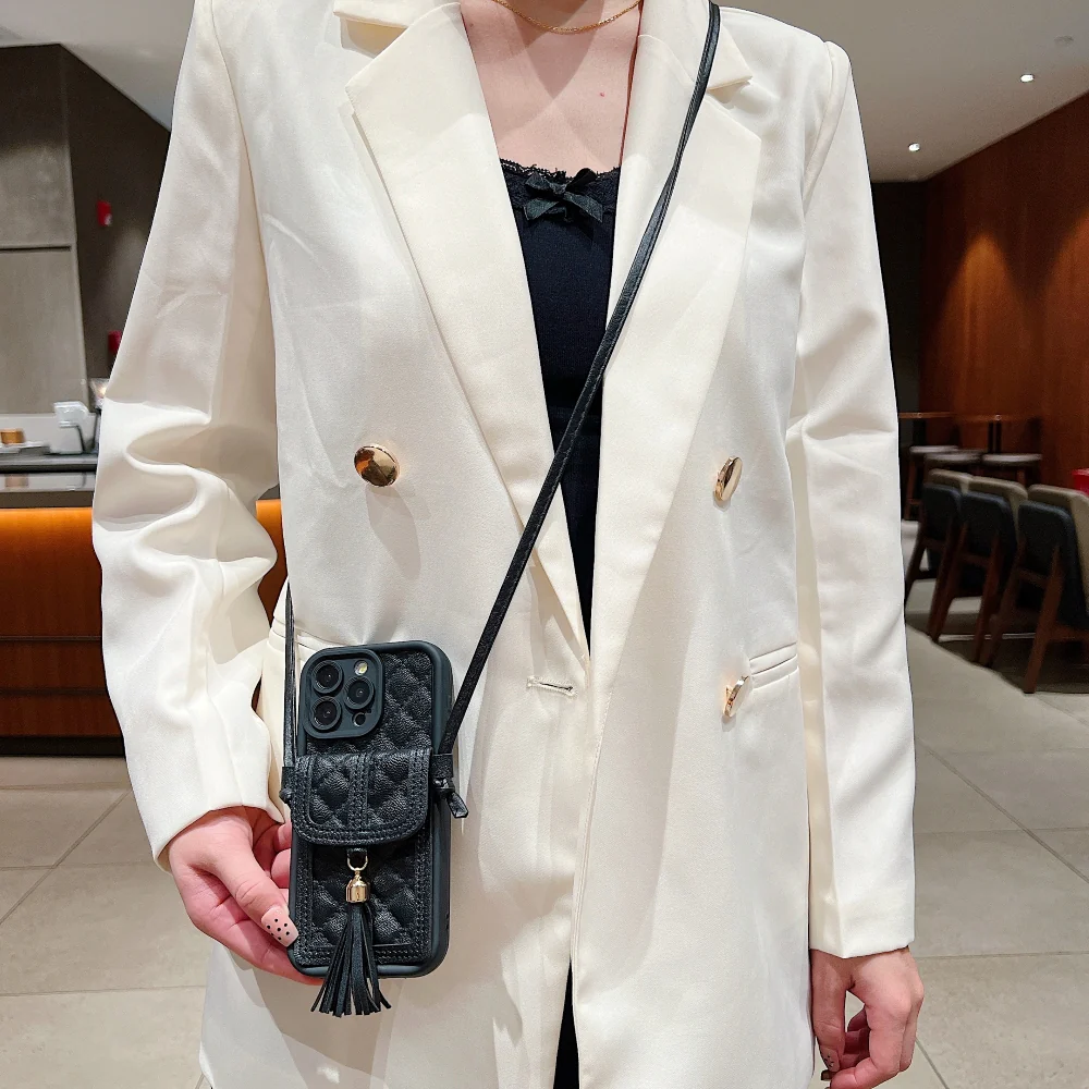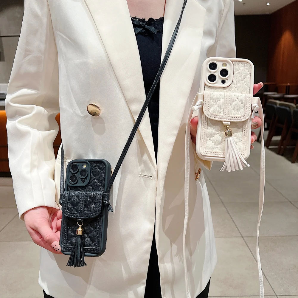 Luxury Crossbody Wallet Case for iPhone, PU Leather Phone Purse with Detachable Shoulder Lanyard, Card Holder and Tassel (R2BS969)
