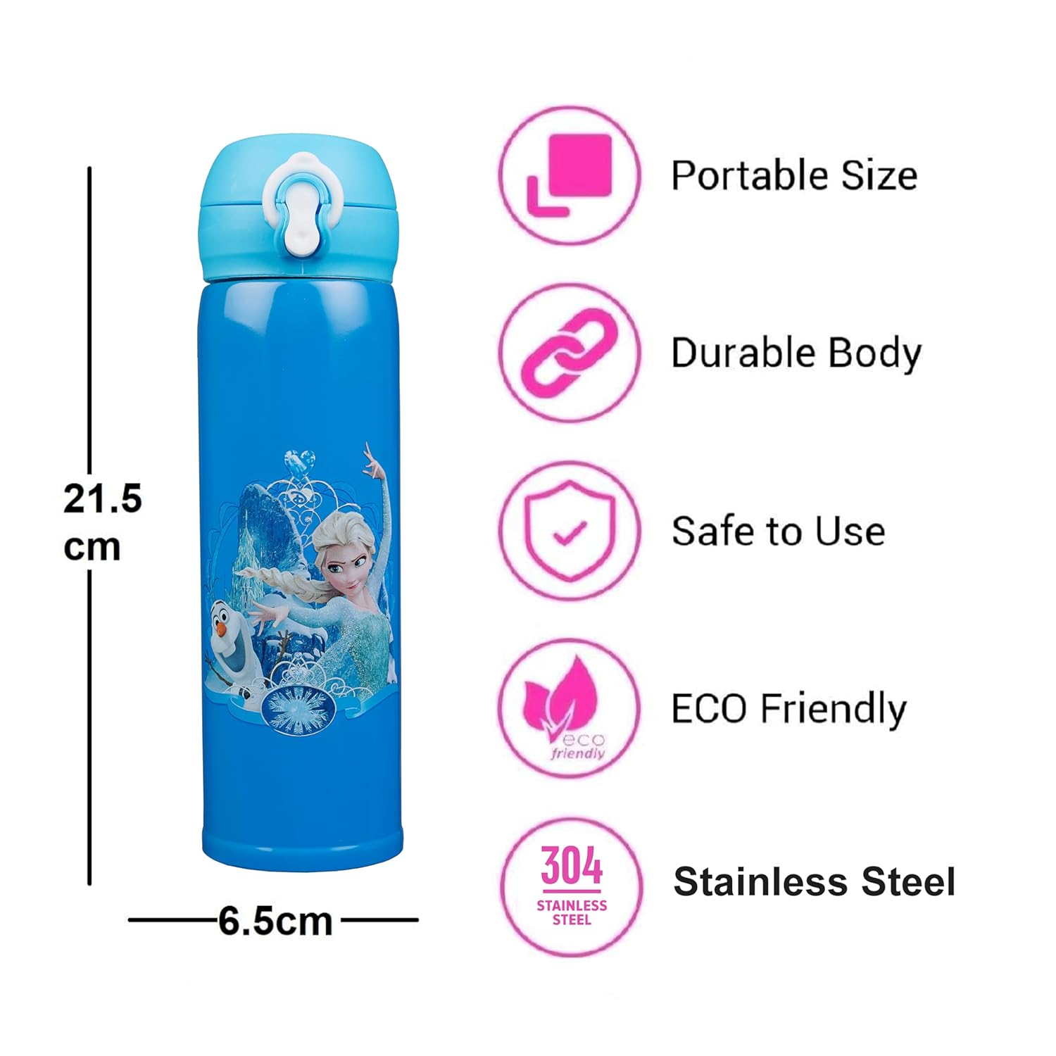 • Helps in keeping drinks hot or cold for 6 hours. It has easy to open cap and has wide mouth for easy filling and cleaning of bottle.