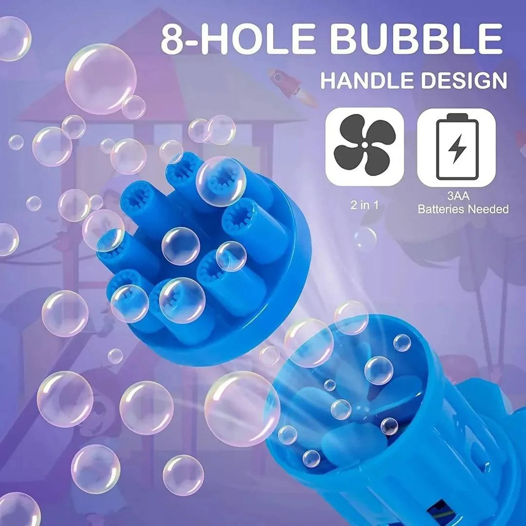 8 Hole Bubble Maker Gatling Bubble Gun Machine Toy for Kids with Bubble Solution Indoor and Outdoor Toddlers Bubble Launcher Machine for Girls and Boys