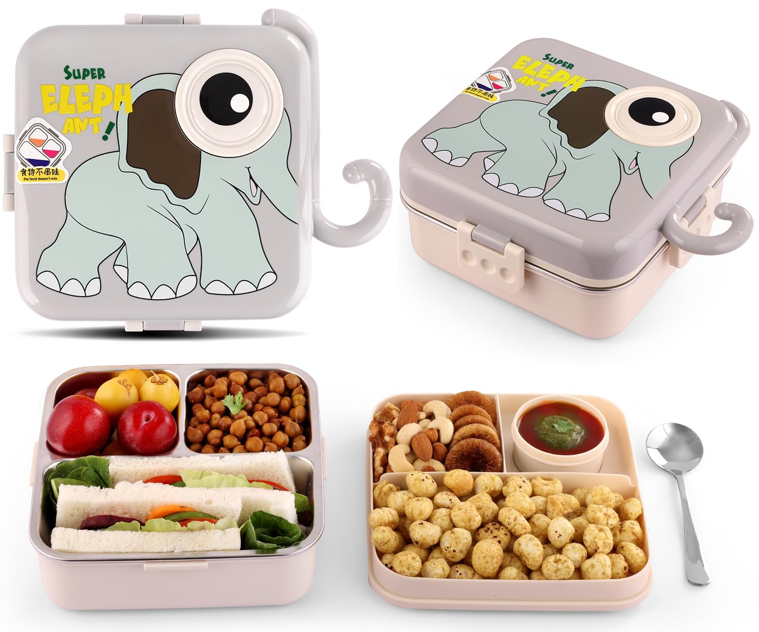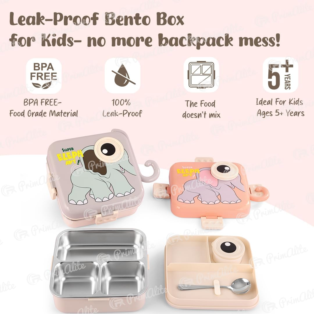 FUN & CUTE CARTOON PATTERNS DESIGN: Delight your child with a bento lunch box featuring adorable designs like Dinosaur, Cat, and Elephant. It's a great way to attract kids attention and remind them that they’re special, helping kids (especially picky eaters) excited to eat more at school. A Perfect gift.