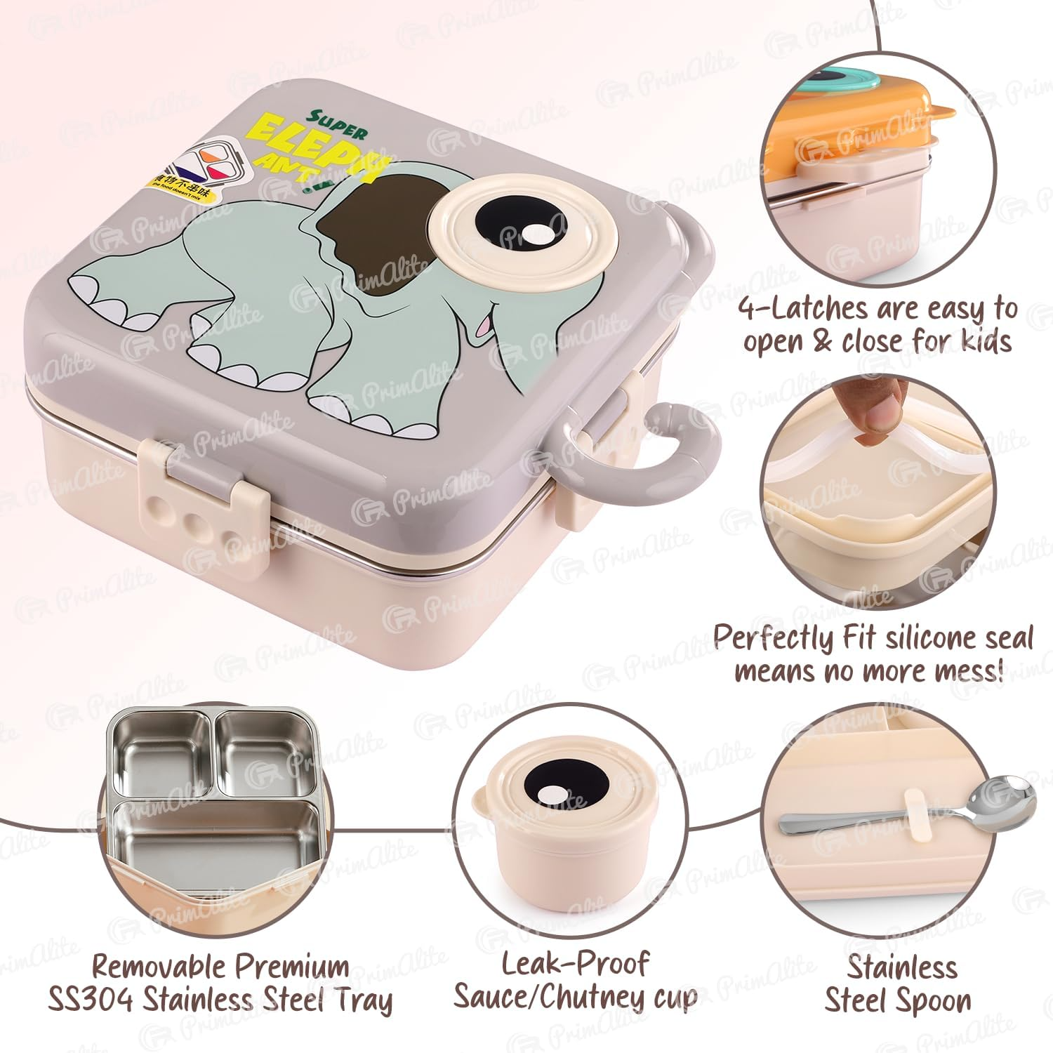 TWO-LAYER, 3-COMPARTMENT DESIGN: Offers ample 1100ml capacity with separate compartments to keep food items in its original compartment and will not leak/mix into each other. One-stop solution for kid’s school lunch or snacks packing.