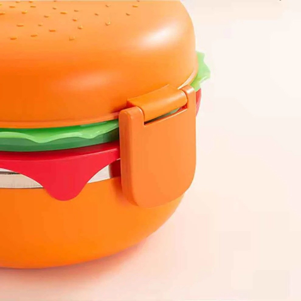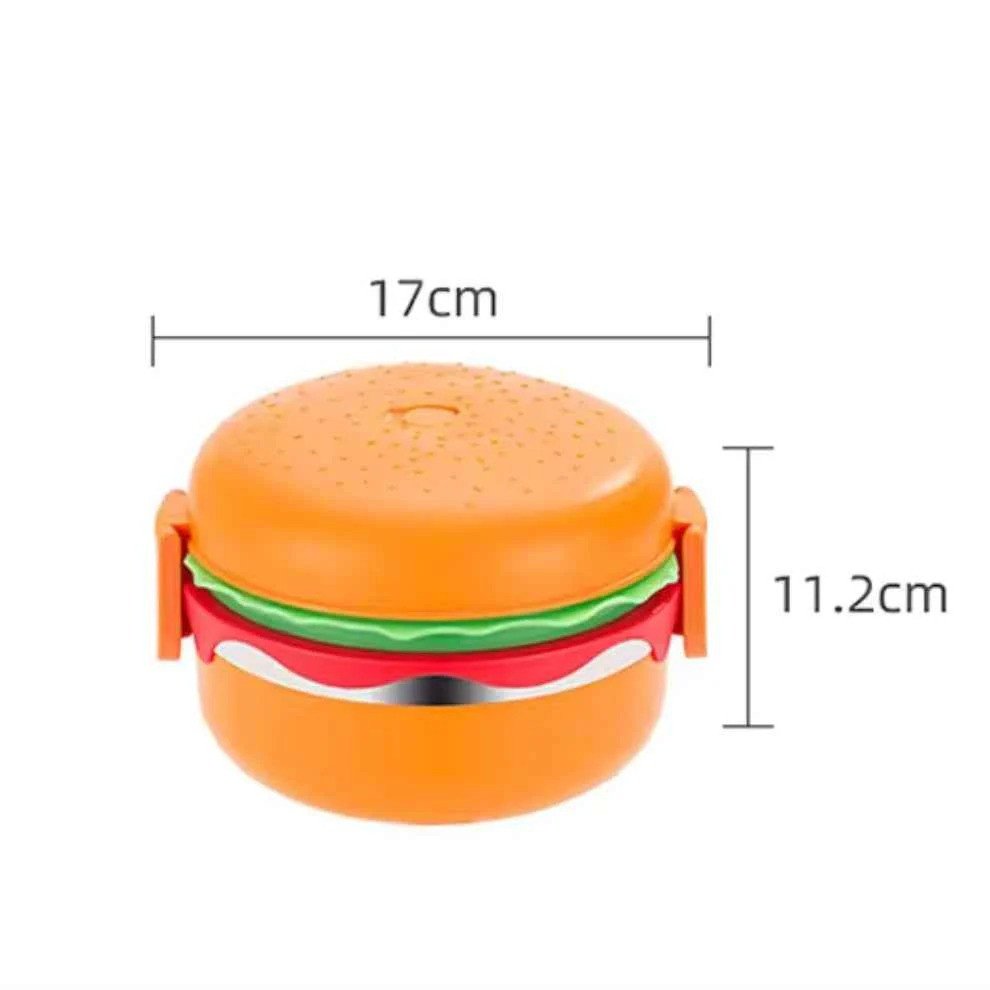 • Introducing our Stainless Steel Double Layered Burger Shaped Lunch Box For Kids, the ultimate solution for hygienic and convenient meal storage!