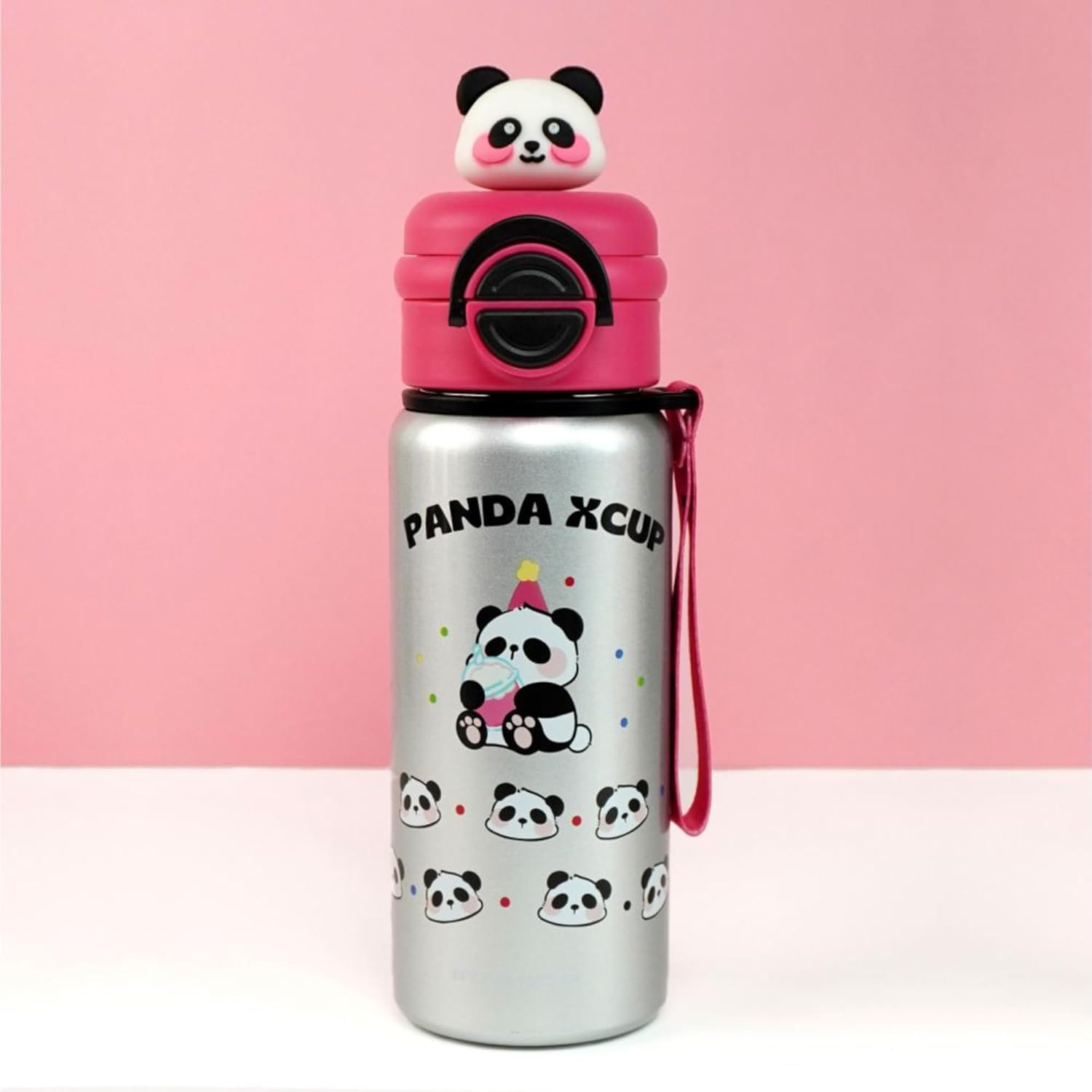 Cute Panda Water Bottle for School Kids (500ml) | Leak-Proof | Flip Cap & Strap | Stainless Steel Thermos for Boys & Girls (R2BS847)