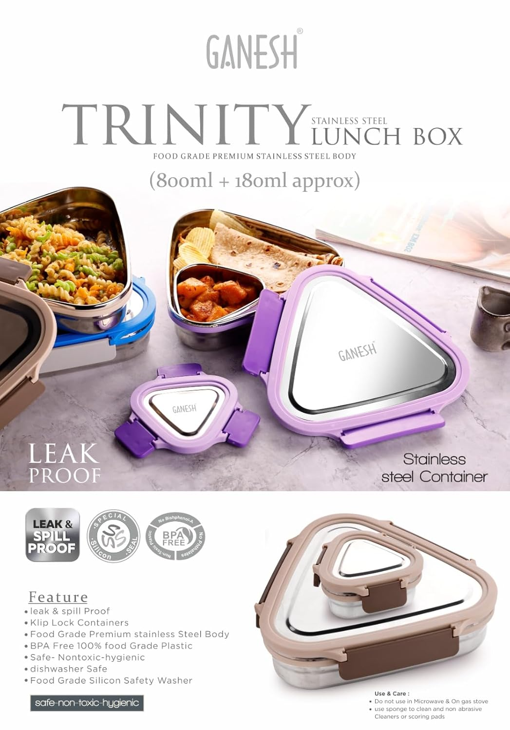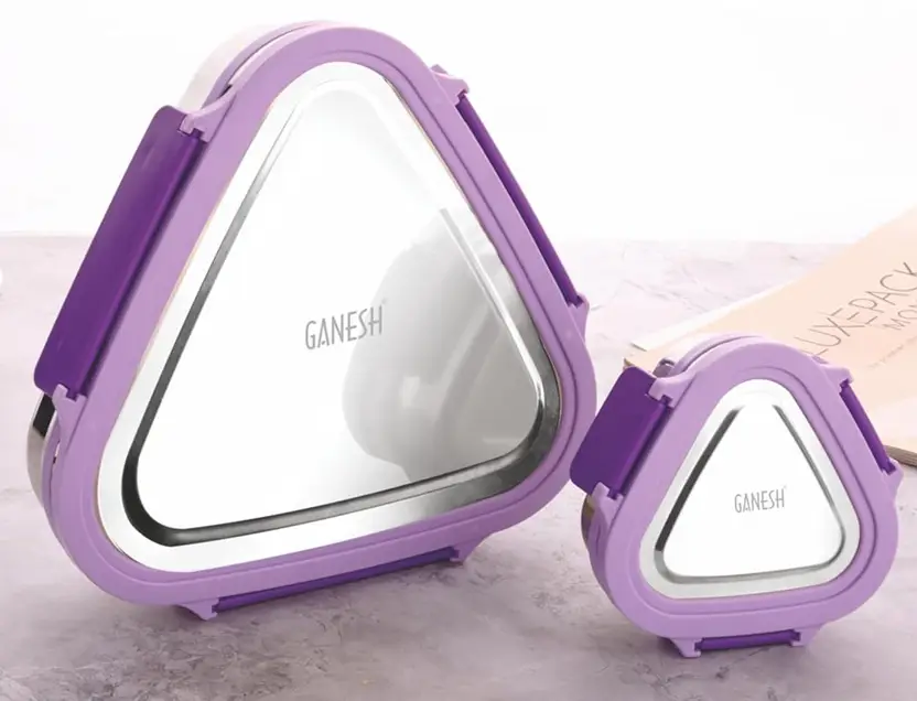 Add a touch of innovation and practicality to your everyday meals with the Ganesh Trinity 2-Piece Stainless Steel Triangle Lunch Box Set. With its eye-catching triangular design, this unique tiffin set is not just about style—it’s engineered for smart, space-saving functionality and versatile food storage.