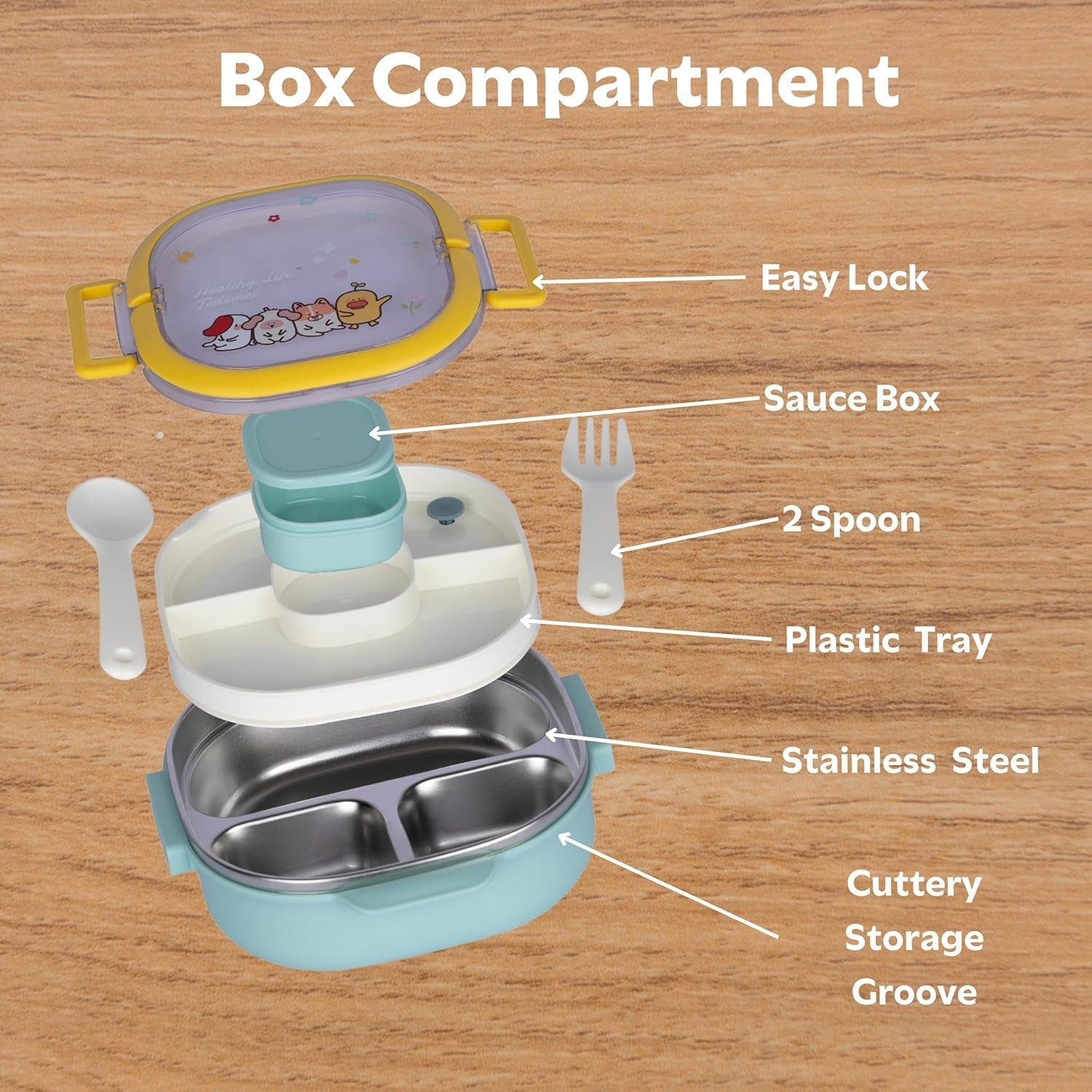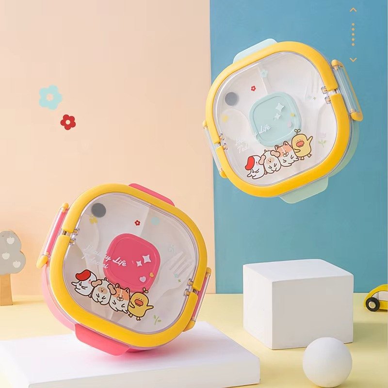 • Design: The lunch box has a double-layer or multi-tier design, with a transparent lid that often features cute cartoon animal designs. Some models have a handle for easy carrying.