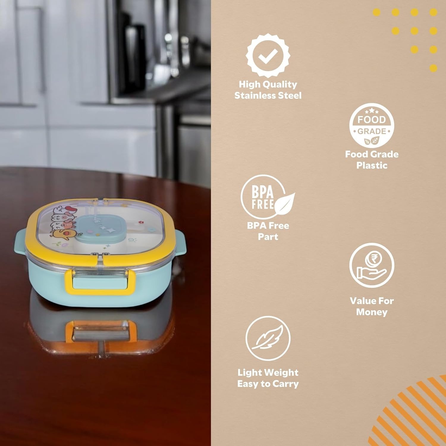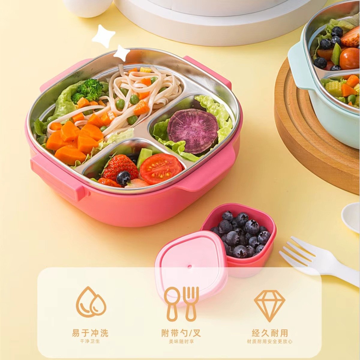 • Included Accessories: The lunch box often comes with a spoon and fork set.