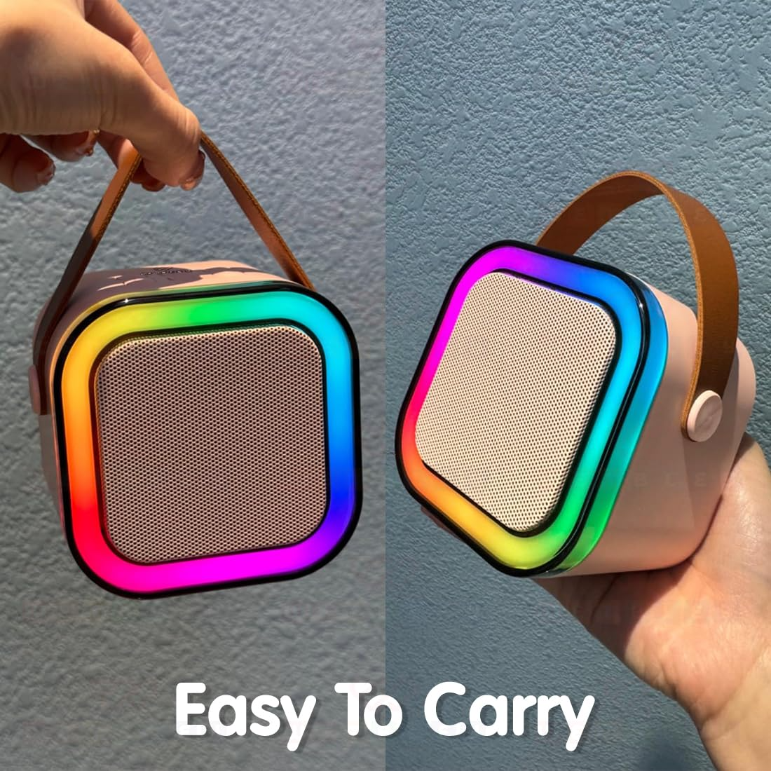 MINI KARAOKE MACHINE: Experience powerful and crystal-clear audio with our mini karaoke machine. Equipped with dual speakers, it delivers deep bass and crisp treble, creating a captivating three-dimensional effect. Plus, the built-in LED light enhances the singing atmosphere.