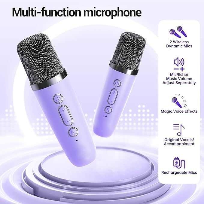 Karaoke Machine for Kids and Adults, Travel Bluetooth Mini Karaoke Microphone Singing Speaker with 2 Wireless Mic, Speaker for All Smartphones, Birthday, Family, Home Party (Multicolor)