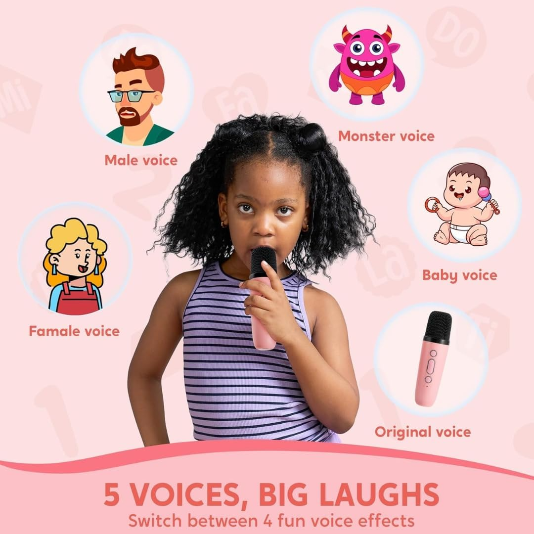 Multi function Karaoke Machine: Karaoke system come with 5 funny magic voice and colorful lights that make a atmosphere, perfect for adding excitement and vitality to any party or gathering, let you and your family and friends have a pleasant karaoke time.