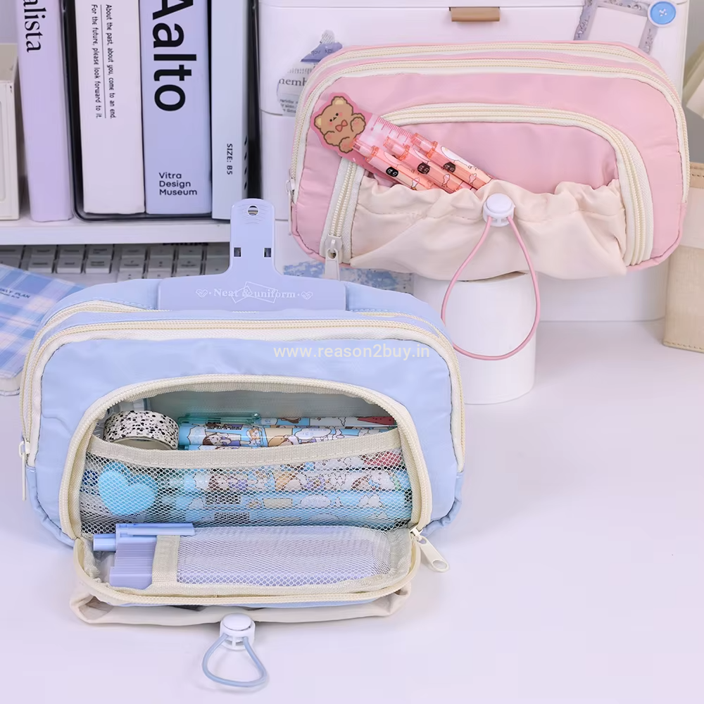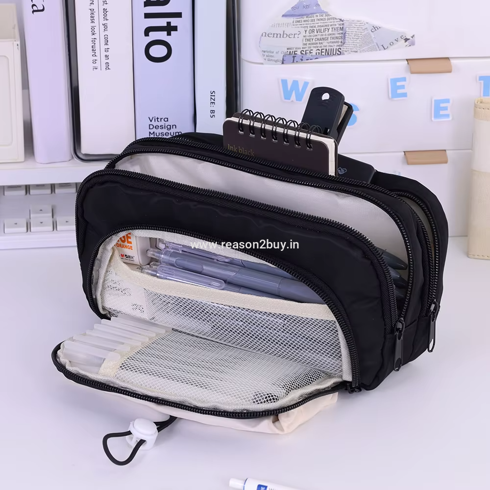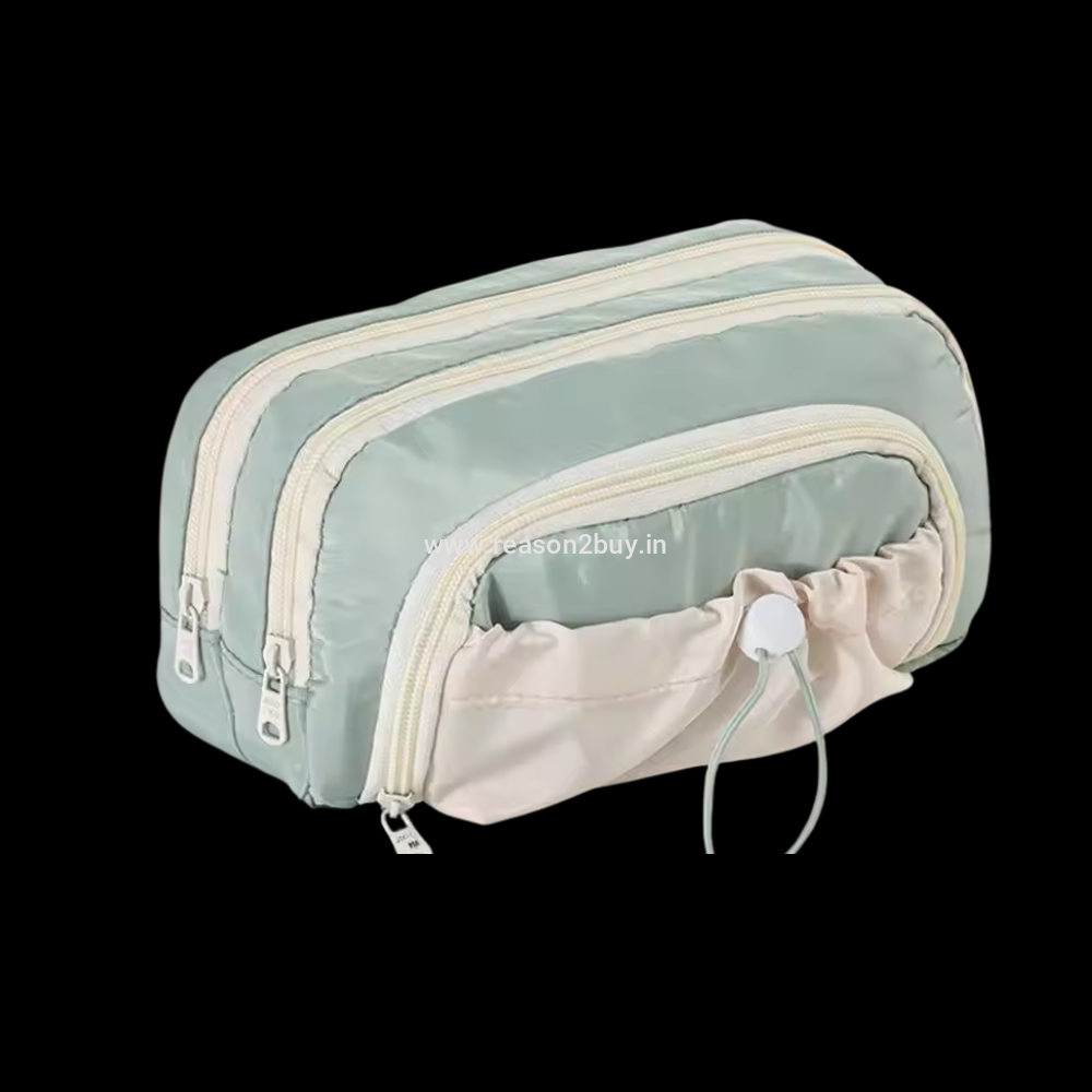 Say goodbye to rummaging through a messy bag. This smartly designed organizer features three main zippered compartments and an extra front drawstring pocket, ensuring every pen, pencil, eraser, and accessory has its own place. Made from premium, durable canvas material, it's built to withstand daily wear and tear from school, college, or office life.