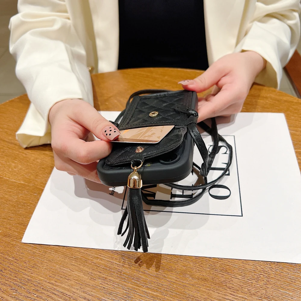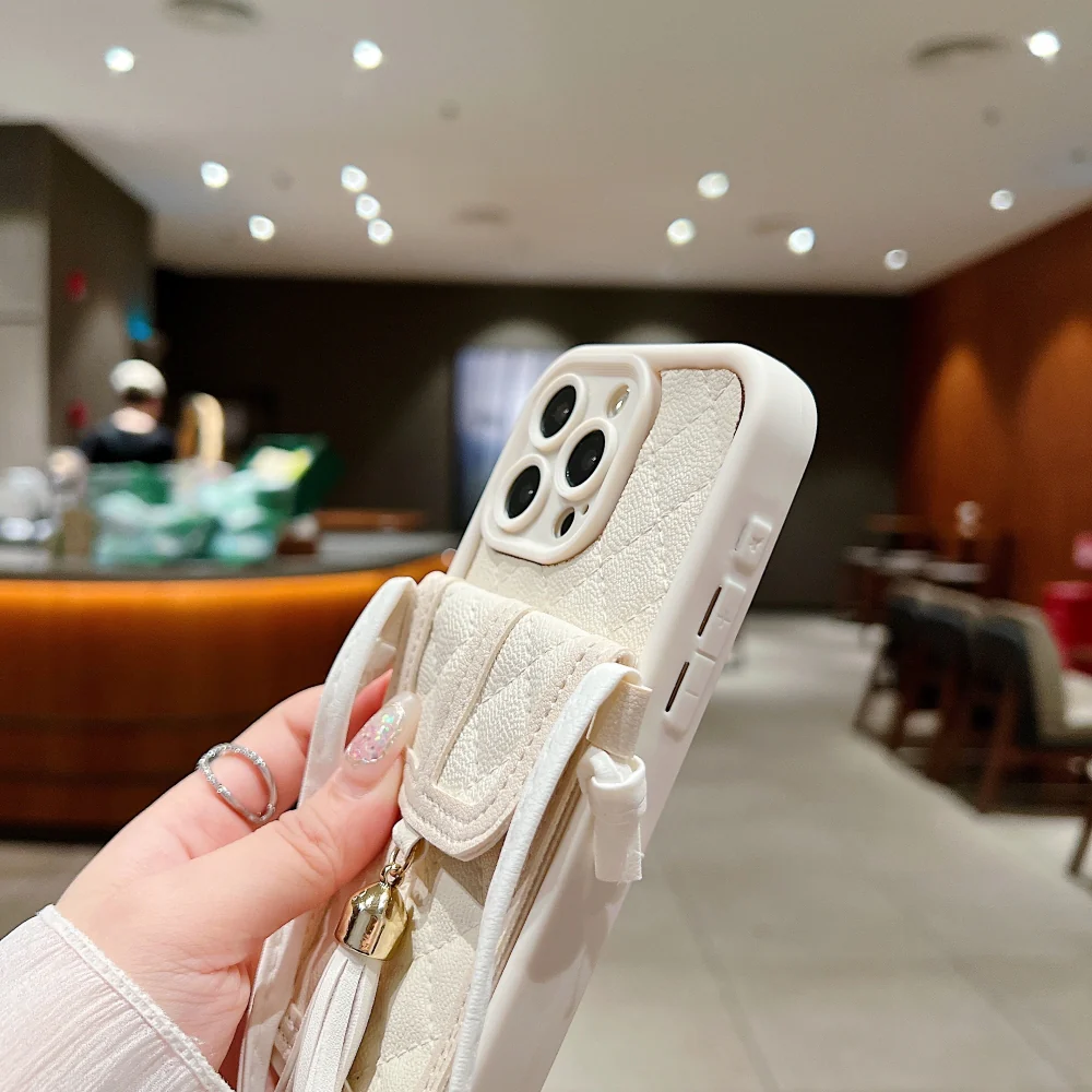Luxury Crossbody Wallet Case for iPhone, PU Leather Phone Purse with Detachable Shoulder Lanyard, Card Holder and Tassel (R2BS969)