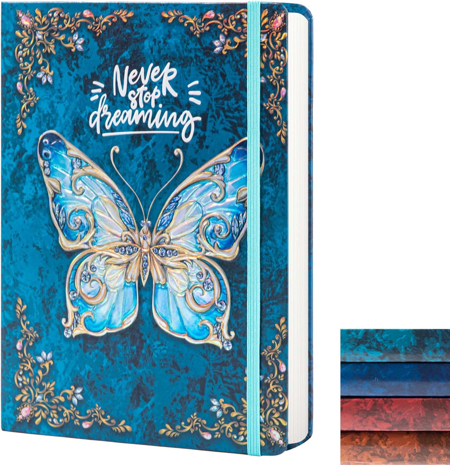 PERFECT SIZE: Inches:5" x 7" notebook, it can be used as an appointment book, daily journal, sketchbook, or travel diary. This sturdy notebook with elastic closure band, and a ribbon bookmark, glued binding is designed to 180° lay flat, making it a great writing experience for users.