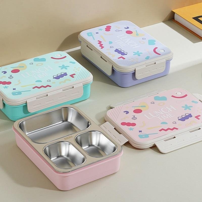 Stainless Steel Tiffin Box Bento Lunch Box for Kids 3 Grids Leakproof Insulated Food Storage Container Lunch Boxes 700 m... -