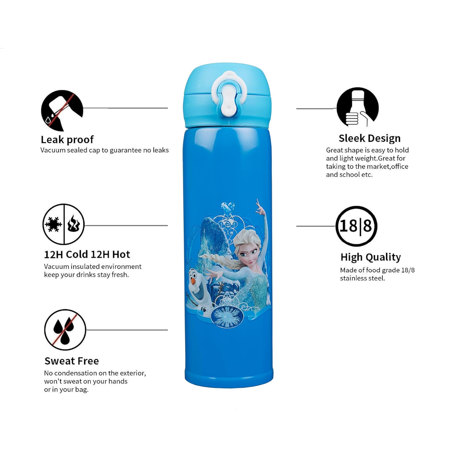 • Helps in keeping drinks hot or cold for 6 hours. It has easy to open cap and has wide mouth for easy filling and cleaning of bottle.