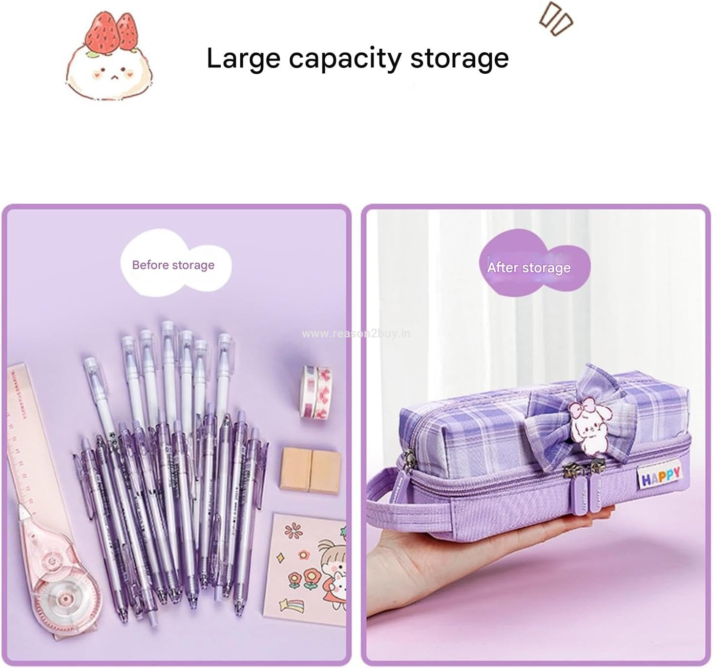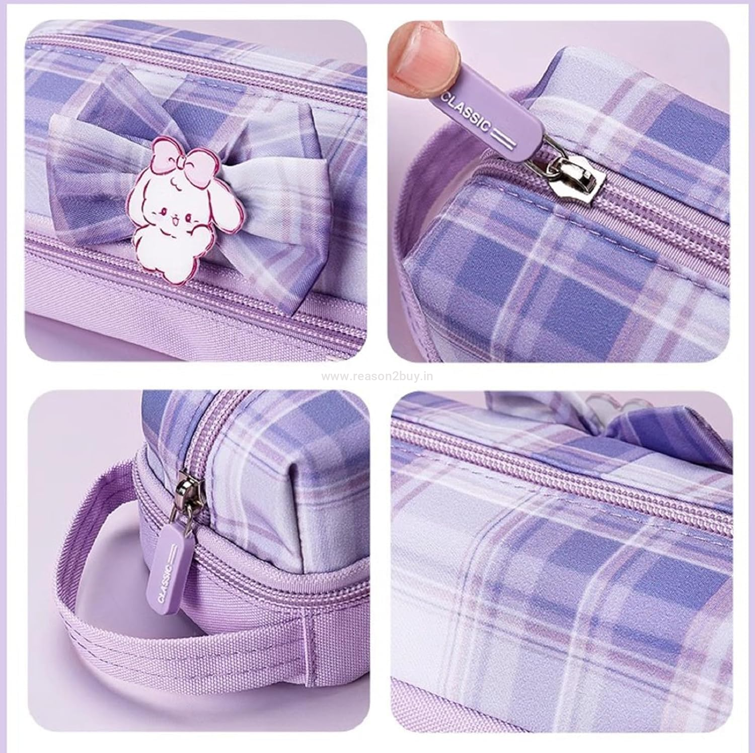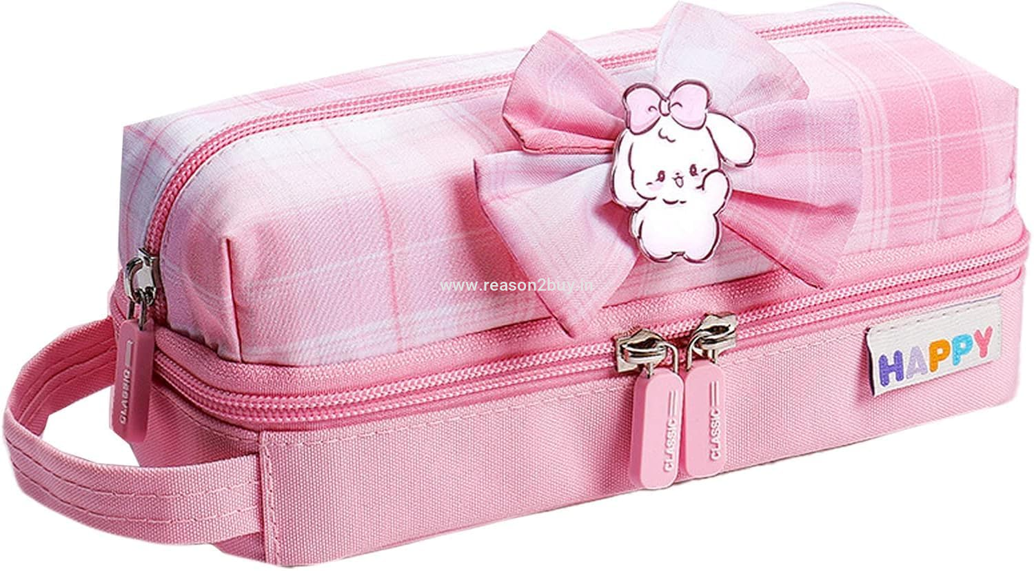 ---- A stationery bag is designed in college style, with cartoon patterns, plaid prints and bow decorations, exquisite workmanship and bright colors. There is a handle design, which is easy to carry.